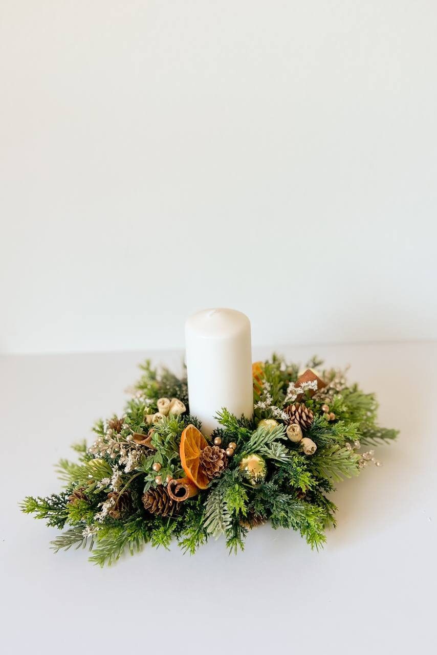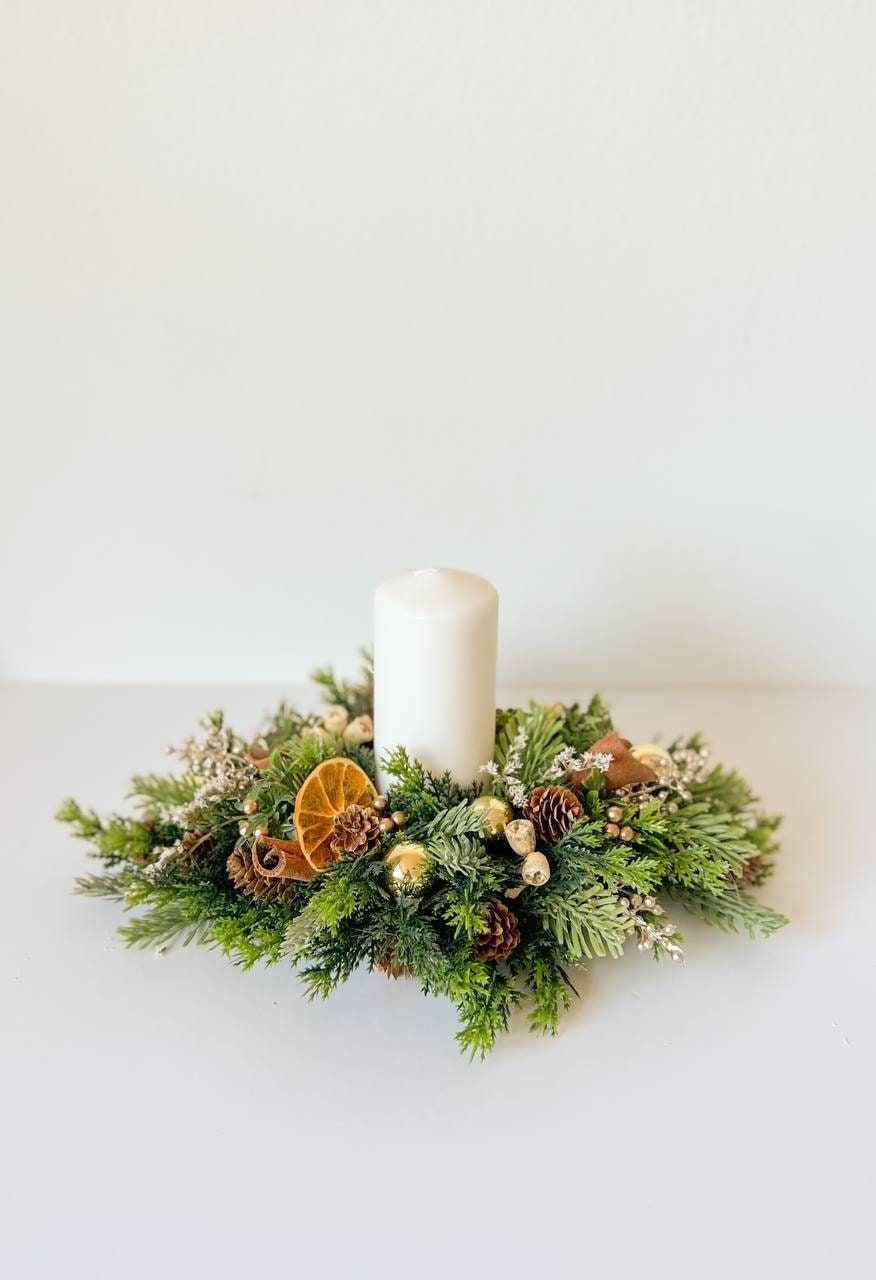 Transform your home into a rustic winter wonderland with our Farmhouse Christmas Arrangement featuring Dried Oranges. This enchanting winter centerpiece, complete with a charming candle, is the ideal addition to your holiday decor. It's now available for sale and promises to infuse your space with the warmth and coziness of the holiday season.