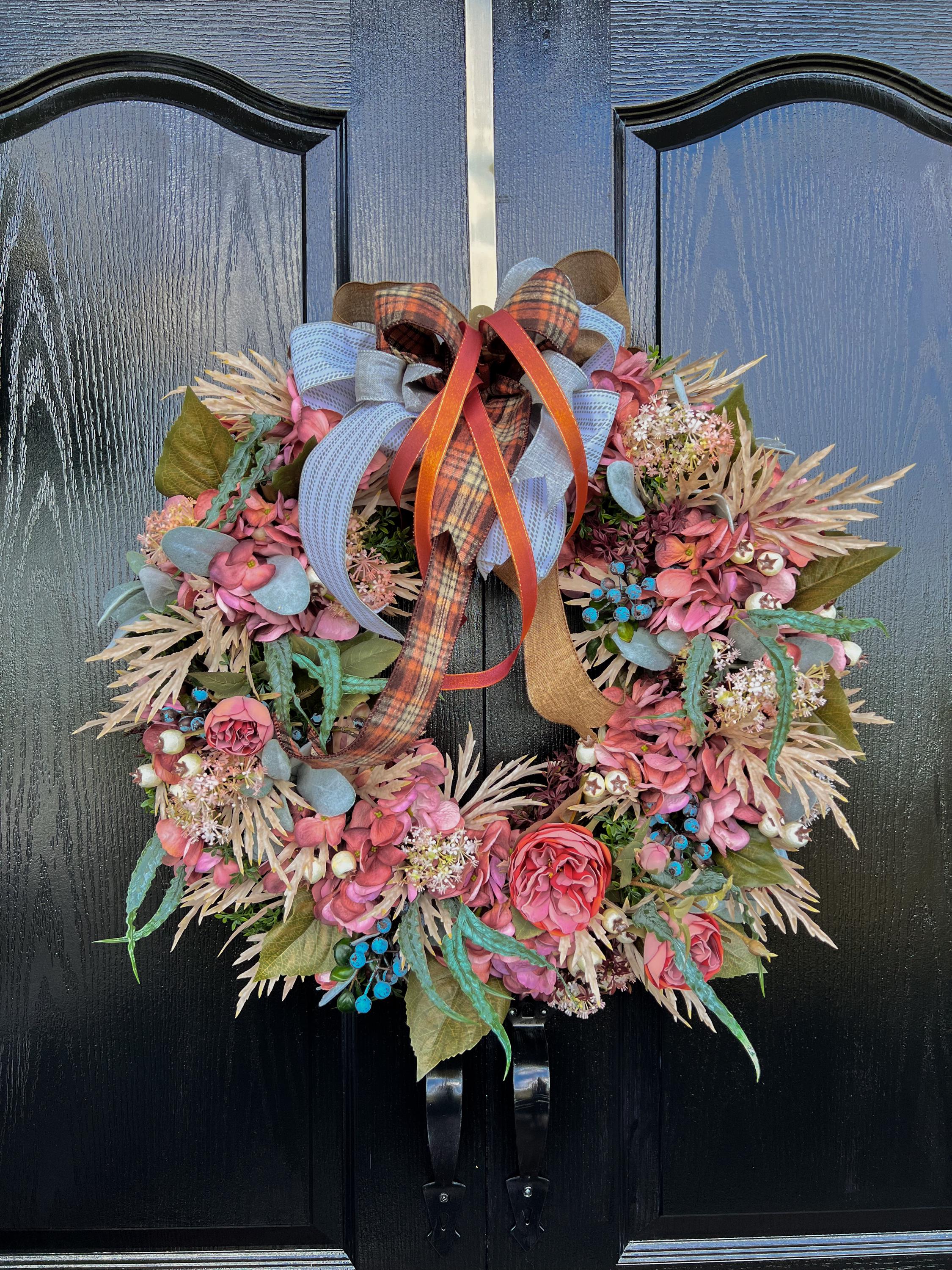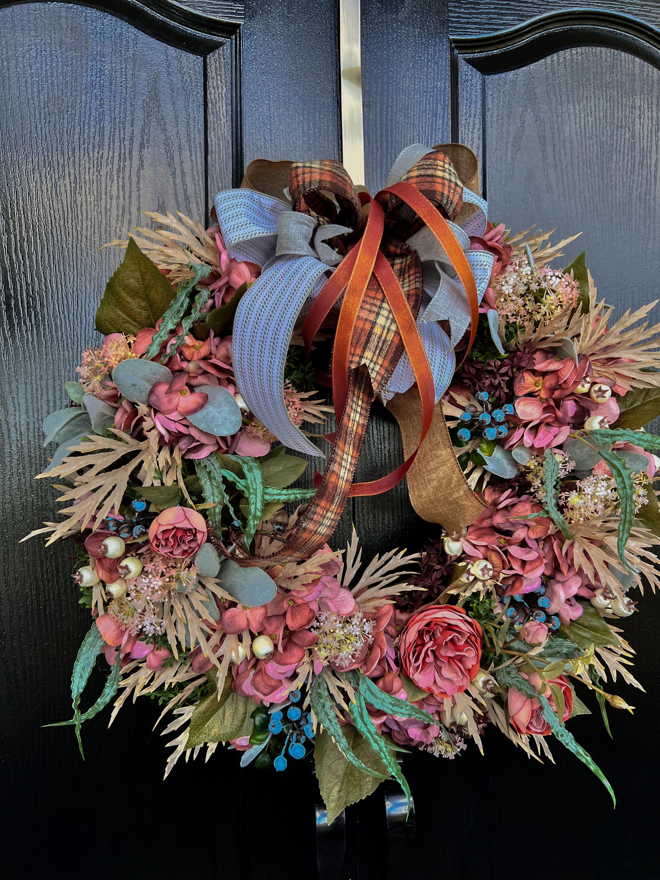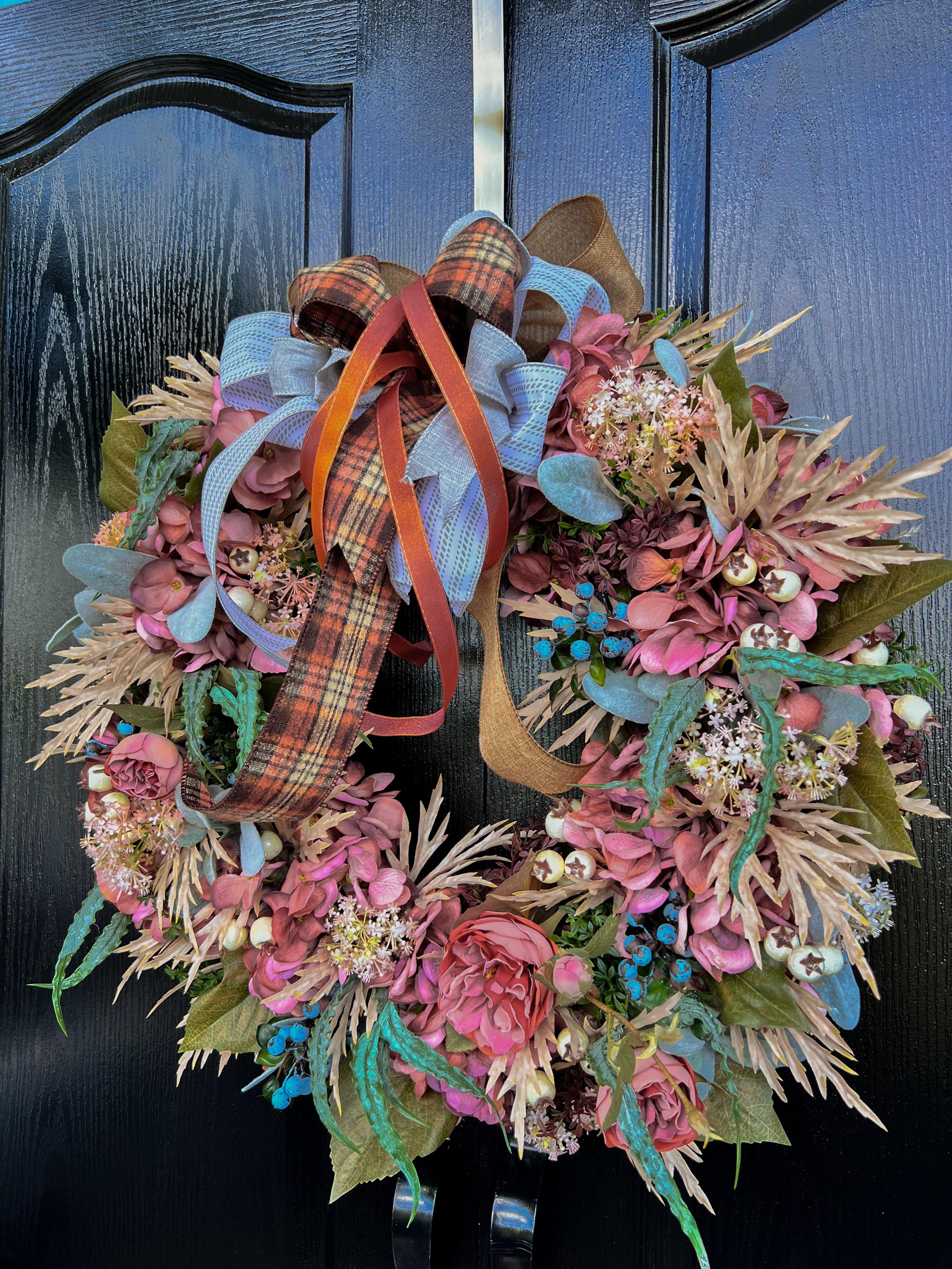Beautiful fall wreath for front door, Large fake flower wreath for home, Autumn front door wreath for door, Outdoor wreath for backyard