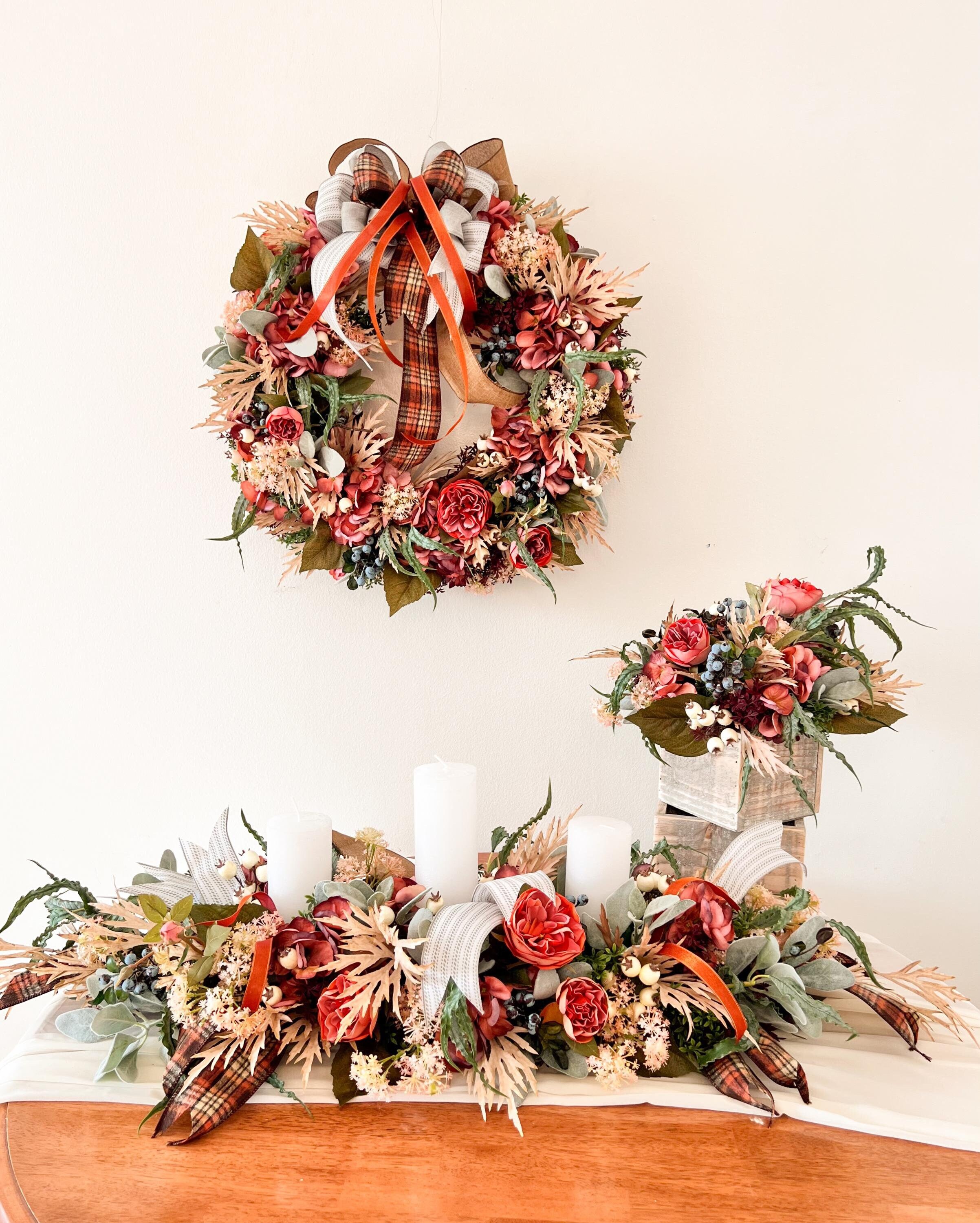 Welcome the beauty of autumn with our stunning Fall Front Door Wreath, adorned with vibrant silk flowers. This elegant wreath showcases a rich array of seasonal colors, featuring lifelike blossoms in shades of red, orange, and yellow. Perfectly arranged, the silk flowers are complemented by lush greenery and accents of berries and fall foliage, capturing the essence of the season. Handcrafted for durability and lasting beauty, this wreath is ideal for adding a festive touch to your front door, porch, or entryway. Easy to hang and maintain, it brings a warm, inviting charm to any home décor.
